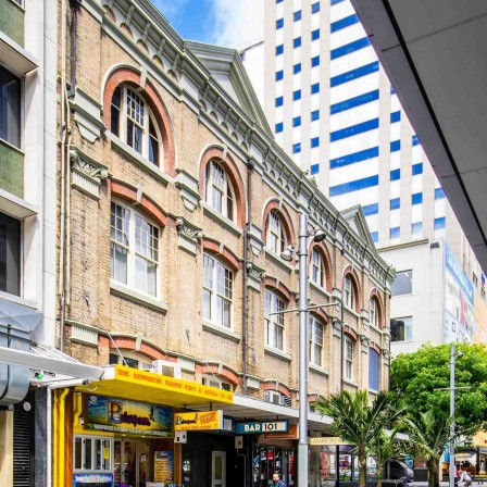 Iconic Auckland landmark building sensitively repainted in traditional enamels for wooden frames and windows and breathable paint for all stonework.
